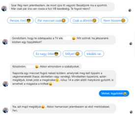 Szeretnél velem beszélgetni és tippjátékot játszani a messengeren? Nincs más dolgod, mint bekommentelni, hogy »Tippeljünk együtt, Feri!« én pedig rád írok messengeren a részletekkel! Vagy csak egyszerűen írj rám messengeren, hogy: »Tippeljünk együtt Feri« Készen állsz?:)