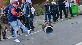 E frusztrált indulat nyilvánult meg 2013. szeptember 29-én azon a balliberális, akkor éppen Bajnai Gordonban messiást remélő tüntetésen, amelynek csúcspontjaként a magát Dopemannak hívó Pityinger László nevű rapper belerúgott egy hungarocellből készült és ledöntött Orbán-szobor fejébe. „Üssed, verjed, kúrjad, szúrjad” ugyebár…