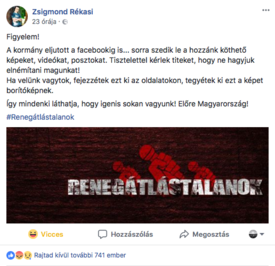 A Jobbikból kiábrándult radikálisok, a Vadhajtások sikerrel jelentették Rékasi Zsebi kirohanását, a Facebook el is távolította arra hivatkozva, hogy sérti a közösségi alapelveiket. A dühös aktivista ezt nem hagyta szó nélkül. Alább olvasható legfrissebb bejegyzésében arra utal, hogy a Facebook működését Magyarország Kormánya befolyásolja.