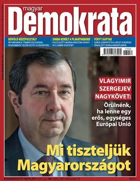 Interjú Vlagyimir Szergejev orosz nagykövettel és Rétvári Bence államtitkárral; belső viták a Jobbikban; Soros nyílt támadást indított Magyarország ellen.A Nyugat szemében akkor szimpatikus Oroszország, ha gyenge. Amikor a 90-es években a gazdaság romokban volt, dicsérték, hogy milyen demokratikusak és nyitottak vagyunk. Aztán elfeledkeztek rólunk, szinte eltemettek. Mikor pedig az új évezredben Moszkva újra hallatni kezdte a hangját, döbbenten kérdezték: hogy merünk mi, oroszok egyáltalán megszólalni? – nyilatkozta a Demokratának Vlagyimir Szergejev.