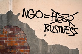 A felirat jelentése: Civil szervezet = segítség (áthúzva) – üzlet. Fotó: shutterstock.com, illusztráció
