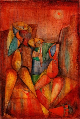 – Fatáblákra felvitt szemcsés, érzéki felületei freskóhatást keltenek, a visszadörzsölt újabb és újabb rétegek sajátos vibrálással, belső tűzzel töltik meg a képeit. Festményein a színekkel játszik, ezért azok olykor gótikus üvegablakokra, máskor a bizánci mozaikok vagy zománcok kifinomult minőségére emlékeztetnek – mutat Makláry Kálmán Szóbel olyan, az 1940-es évek környékén készült munkáira, mint a Harlekin zenészek, a Szerelmesek vagy a Nők a konyhában.