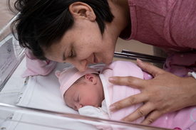 Magyarország elsõ újévi babája, Alíz Jusztina anyjával, Szabó-Magyar Vivennel a Kistarcsai Flór Ferenc Kórház szülészeti osztályán 2026. január 1-jén. A kislány nulla óra nulla perckor született 3610 grammal és 57 centiméterrel a szülõk elsõ gyermekeként, természetes úton.