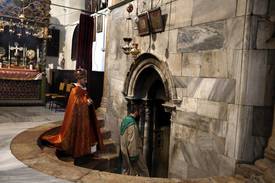 Szertartás a betlehemi Születés templomának altemplomában 2018. december 23-án. Az altemplom azon a helyen, abban a barlangban épült, ahol a keresztények hite szerint Jézus megszületett.