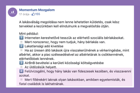 „A Momentum a Facebook-oldalán osztott meg egy rövid videót, amelyben 4 pontban tesznek javaslatot a fővárosi »lakásválság« megoldására.