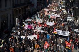 Ismét utcai felvonulásokkal tiltakoztak kedden Franciaországban a szakszervezetek a kormány tervezett nyugdíjreformja ellen, miközben hatodik napja folytatódott a közlekedési sztrájk.
