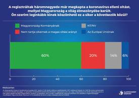 Az április 27-én és 28-án ezer ember telefonos megkérdezésével készült felmérés szerint a válaszadók 60 százaléka úgy gondolja, a kormány sikere az, hogy a regisztráltak immár több mint háromnegyede megkapta az oltást.