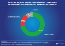 A magyar felnőtt lakosság „masszív többsége”, 72 százaléka elégedett a kormány oltóanyag-beszerzési stratégiájával a koronavírus-járvány alatt – derült ki az Alapjogokért Központ közvélemény-kutatásából, amelyről csütörtökön tájékoztatták az MTI-t.