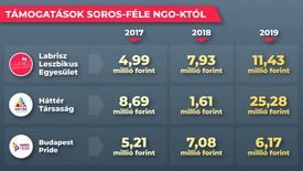Ilyen a Labrisz Leszbikus Egyesület, a Háttér Társaság, a Budapest Pride, a Transzvanilla Transznemű Egyesület, a Magyar LMBTQ Szövetség és a Patent Egyesület. A pénzügyi kimutatások szerint a felsorolt álcivil szervezetekbe évente összesen több tízmillió forintot pumpál a Soros-hálózat. A Labrisz 2019-ben 11 milliót, a Háttér Társaság 25 milliót, a Budapest Pride 6 millió forintot kapott a Nyílt Társadalom alapítványtól, illetve más Soros-féle NGO-tól.