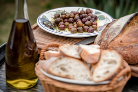 Az olajbogyó az európai olajfa (Olea europaea) termése. Eredetéről, biológiai feltűnéséről megoszlanak a vélemények, egyesek 35 ezer évvel ezelőtti fosszíliákban is felfedezni vélik a ma ismert növény maradványait. Annyi bizonyos, hogy mintegy 7000 évvel ezelőtt vált termesztésbe vont kultúrnövénnyé a mediterráneumban. A legelső olajligetek legkitartóbb példányai ha beszélni tudnának, tanúsíthatnák mindezt, az olajfa ugyanis becslések szerint évezredekig képes élni és teremni. Kréta szigetén, Vuvesz faluban még ma is terem a világ ez idő tájt ismert legöregebb olajfája, ami fagyűrűelemzések szerint legalább 2000 éves. Törzse négy és fél méter átmérőjű, magassága meghaladja a 12 métert. Az olajbogyóból préselt olaj mindig keresett termék volt, az előkelő római hölgyek kozmetikumként használták, de világításra is alkalmazták. Az olívaolaj a mediterrán konyhák nélkülözhetetlen alapanyaga, de jól párosítható más régiók gasztrokultúrájával is.