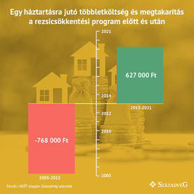 A kormány 2013-tól rezsicsökkentési programba kezdett, amelynek keretében hatósági szabályozással mérsékelte a lakosság közüzemi díjait. A Századvég Alapítvány elemzésében megvizsgálta, hogy a rezsiköltségek alakulása hogyan befolyásolta a magyar háztartások kiadásait 2005 és 2021 között. A számítások tanulsága, hogy a rezsicsökkentésnek köszönhető megtakarítások mértéke 2021 év végére csaknem elérte az intézkedést megelőző időszak veszteségeit.A rezsicsökkentési program bevezetését megelőzően, a magyar családoknak folyamatos és jelentős áremelésekkel kellett szembesülniük. A közüzemi díjak növekedése 2005 és 2012 között egy háztartásnak átlagosan havi 9 ezer, összesen 768 ezer forint többletköltséget okozott, azaz a családokat ért kár országos szinten meghaladta a 3 ezer milliárd forintot. Ráadásul, a kedvezőtlen tendenciát a különböző szociális támogatások nem voltak képesek differenciáltan enyhíteni, így a legszegényebb családoknak is nagymértékű (átlagosan 646 ezer forintos) többletköltséget kellett elszenvedniük.
