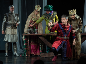 Merthogy nem kispályás színházi vállalkozásról van szó, azt már az előadást beharangozó cikkben bemutattam: a fél világot átszövő, Londontól a bizánci császári palotáig érő diplomáciai szálakat, a követjárást az angol II. Edward és a magyar Nagy Lajos között, az expanziós hadjáratot előkészítő és levezénylő logisztikai bravúrok sorozatát, a magyar diplomáciai játszmákat a Dalmáciát megszerezni akaró, Zárát ostromló Velence megkerülésére a Földközi-tenger medencéjében, és az itáliai hadjárat előkészítését és logisztikázását az 1300-as évek közepének gazdasági és társadalmi viszonyai között, valamint a magyarságot és Európát immáron bő évszázada sanyargató tatárok elleni megsemmisítő hadjáratot a színpadon mind-mind be kell mutatni vagy legalábbis érzékeltetni szükséges a színpadon, hogy a végre nyugodt hátországgal rendelkező Nagy Lajos seregei megindulhassanak Nápoly felé. Mindez elárulja, hogy Andrási Attila egyedi látásmódú rendezésében és Szigeti Réka dramaturgiai képességeivel megjelenítve valóban izgalmas és szó szerint vérbő előadásra számíthatunk.