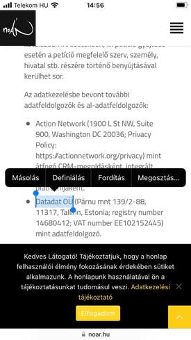 A platform által gyűjtött adatokat adatkezelési tájékoztatójuk szerint pedig több másik tengerentúli szervezet mellett a Bajnai Gordonhoz köthető DatAdat is kezeli.
