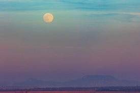 Telihold a Balaton tanúhegyei felett, jobbról a Badacsony a Zala megyei Nagyradáról fényképezve 2023. január 6-án