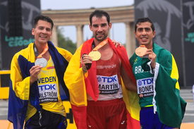 Spanyolország szerezte meg a budapesti atlétikai világbajnokság első aranyérmét, miután Álvaro Martín 1:17:32 órával megnyerte a férfi 20 kilométeres gyaloglást. Helebrandt Máté egyéni csúccsal a 23. lett.
