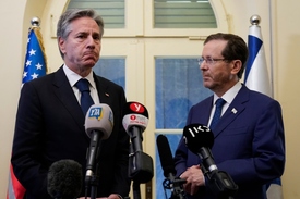 A politikus úgy fogalmazott, hogy saját maga személyesen is átérzi és érti „azt a szívszaggató visszhangot, amelyet a Hamász mészárlása az Izraelben, vagy bárhol máshol élő zsidók számára hozott”. Hozzátette, nemcsak külügyminiszterként utazott Izraelbe, hanem zsidó emberként, akinek családi múltjában is szerepel a holokauszt. Anthony Blinken elutazásakor újságírók előtt többi között arról beszélt, hogy látogatása a szolidaritás és az Egyesült Államok Izrael melletti kiállásának jelzése. Azt is megerősítette, hogy tárgyalások zajlanak Izraellel és Egyiptommal a Gázában tartózkodó civilek távozásának biztosításáról, de hozzátette, hogy a humanitárius folyosó kialakításáról szóló egyeztetés „érthetően bonyolult”.