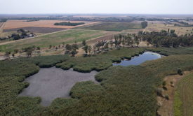 A drónnal készült felvételen az aszálytól sújtott és szinte teljesen kiszáradt Kakasszéki tavak Orosháza közelében 2024. szeptember 4-én