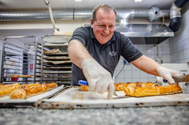 Vidám, lelkes, egymással barátságosan csipkelődő csapat süti a karácsonyi bejglit a dunaharaszti Karl Cukrászda kézművesműhelyében, ahol az adventi időszakban két-háromezernyi töltött tekercs kerül ki a szorgos kezek alól. Amint a cukrászok hangsúlyozzák, a minőségi alapanyagok használata mellett a finom bejgli legfőbb titka a megfelelő gondoskodás. A tésztával ugyanis törődni kell, nem lehet megspórolni az előkészítésére szánt időt.