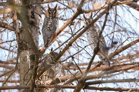 Erdei fülesbaglyok (Asio otus) pihennek egy fán Nagyhegyesen 2025. január 14-én