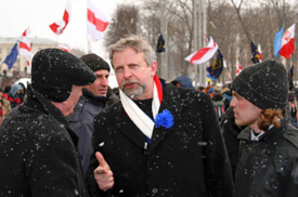 Alekszandr Milinkevics a búzavirágos jelképpel. Minszkben 1997 márciusában nem volt se friss virág, se színes forradalom (Fotó: novisti.by)
