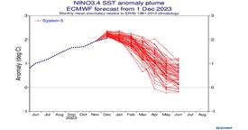 Az El Niño tavasszal (áprilisban) érheti el a csúcspontját, majd fokozatosan gyengülni kezd és az év végére az ENSO semleges fázisba kerül, de nagyon alacsony valószínűséggel negatív anomália is felléphet. Európa időjárását közvetlenül csak akkor lenne képes befolyásolni, ha nyáron teljes egészében fennmaradna, de ennek az esélye most 20 százalék alatt van.