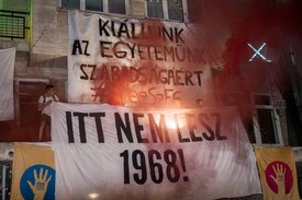 Az index.hu-n megjelent cikk címe szerint „Szélsőjobboldali aktivisták hekkelték meg az SZFE-s diákok tüntetését”. Az történt, hogy kifeszítettek egy molinót „Itt nem lesz 1968” felirattal. Az olvasóban pedig rögzül, hogy a jobboldaliak (akik egyébként nem „diákok” vagy „fiatalok”, mint a színművészetisek, hanem „aktivisták”) szélsőséges, vagyis rendzavaró, sőt bűnöző elemek.