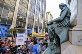 Még az sem segít rajta, hogy részben ő írta az USA alkotmányát, amely egyébként az utcákon őrjöngő vandálok szabadságát is garantálja.