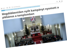 Az index.hu keményen beleszállt a kampányba, ami a helyi plébános vasárnapi megnyilvánulásához kapcsolódott. Németh László a mise után elmondta a híveknek, hogy a kormánypárti jelöltet támogassák. Ez aztán kiverte a biztosítékot, mert ha egy színész, rendező, filozófus, író vagy egyéb celeb arra használja tekintélyét, ismertségét és elnyert díjait, hogy a kormányt mocskolja, az nagyon európai és rendben lévő; ha egyházi személy vagy magát hívőnek valló személyiség szembe megy a magyar katolikus egyház főbb irányvonalaival, az is nagy teret kap. Ellenben ha egy pap a kormányt eddigi tettei alapján pozitívan értékeli, és híveiben ezt nyomatékosítja, az már skandalum.