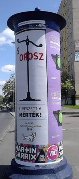 Azonban a kétfarkúak nem pusztán szellemesek, hanem elkötelezettek is (és nem a magyar szuverenitás mellett lettek elkötelezve), és ez a plakát kiegészítéséből látszik. Nem bírták megállni, és a valóban roppant képszerű mérleg alá azért odaírták: „Elveszett a mérték, fiúk!” És még tovább fokozva: „Nemzeti hülyeségmegállítás 2017.”