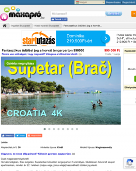 Demszky Gábort, Budapest volt főpolgármesterét követően újabb liberális ikon, Sándor Zsuzsa exbíró árulja horvátországi nyaralóját. Az újságírással is kacérkodó volt bírónő több fórumon is kínálja a Brac-szigetén, Supetarban, a közvetlen a tengerparton lévő apartmanhoz tartozó évi egyhetes üdülési jogát.Fantasztikus üdülési jog a horvát tengerparton 990000 – olvasható a maxapro online hirdetési oldalon. A hirdető nem más, mint az Orbán-kormányt – legyen az bármelyik az eddigi négy közül – folyamatosan bíráló Sándor Zsuzsa exbíró. A hirdetés szerint „Horvátországban, Brac szigetén, Supetarban közvetlen tengerparton 2 személyes, tökéletesen felszerelt szuper apartmanban, minden év 22. hetében (május vége, június eleje) használható üdülési jog eladó”. Az exbíró 990000 forintért kínálja a Waterman Holiday Club területén található apartman évi egy hétre szóló jogát.