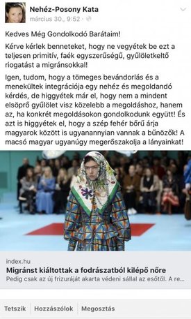Testvére, Dr. Nehéz-Posony Kata ügyvédnő ennél jóval tovább ment, egy idén márciusi Facebook bejegyzésében – mindenfajta következmény nélkül – azt találta leírni, hogy a „szép fehér bőrű árja magyarok között is ugyanannyian vannak a bűnözők.”