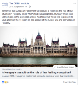 Az mindenesetre szemet szúr, hogy a Facebook-oldalán az intézet rengeteget foglalkozik a magyar politikával ahhoz képest, hogy küldetésük általánosságban a jogállamiság globalizációjához köthető. Siratják a CEU és a Nyílt Társadalom Alapítvány irodájának „elüldözését”, valamint sokat foglalkoztak az EP által indított 7. cikkely szerinti eljárással.
