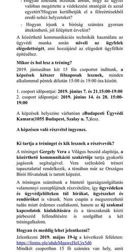 Hogy a fiatalok érzékenyítésében is biztosra menjenek, a természetesen ingyenes tréninget a Budapesti Ügyvédi Kamara Ügyvédjelölti tagozata is külön meghirdette Facebook-oldalán.