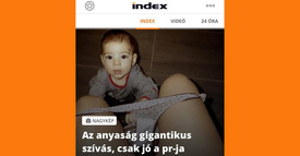 Cím az Indexen: „Az anyaság gigantikus szívás, csak jó a pr-ja”. Azóta a címet lecserélték, a tartalom ugyanaz.