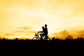 – Megyünk – válaszolt Peti immár hebegés nélkül, majd óvatosan, vigyázva, hogy Évi le ne essen, elindult. Nem a kertek alatt, hanem a Kossuth úton, a jó úton, ki a faluból a Várkert utca emelkedőjén át. Volt egy másik út is, ő azonban mindenképp meg akarta mutatni Évinek, hogy azon az emelkedőn is simán felkerekezik, méghozzá akkor is gyorsítva, ha ketten ülnek a bringán. S végig, végig, a faluból a város felé úgy taposta a pedálokat, mintha az élete múlna rajta. Évi szép szőke fürtjei pedig úgy lobogtak a menetszélben, mintha növendék angyalkák játékos, csillogó szárnyai lennének. Legalábbis Peti, aki menetközben a visszapillantó tükröt úgy állította, hogy abban néha, lopva a lány arcát nézhesse, teljesen így látta. S mentek, mentek, mentek, gyorsan, gyorsan, nagyon gyorsan, hogy mihamarább odaérjenek a városba, ahová Évi kérte meg Petit, hogy vigye el. Ahol…