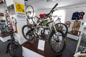 Ugorjunk egy nagyot! Itt sorakozik előttünk a korai gyerekbiciklik tucatnyi változata, aztán az első váltós versenygép, valamint a leghíresebb, Graziella típusú, összecsukható kempingkerékpár. A típusból többek között a Beatles tagjai, de a neves szürrealista festő, Salvador Dalí is vásárolt magának. Aztán láthatók itt a 2000-es évek sztárjai, a legmodernebb ötvözeteket felhasználó mountain bike és downhillgépek – és az olyan extrém alkotások is, mint a fekve hajtott vagy a épp a Trabant-karosszériából épített bicikli. Itt van az az 1938-ban feltalált Compagnolo-féle váltó is, amit még hosszú fémkarokkal működtettek a versenyzők, és amíg a láncot egy másik fogaskerékre csúsztatták, nem előre-, hanem hátrafelé kellett tekerniük a pedált.