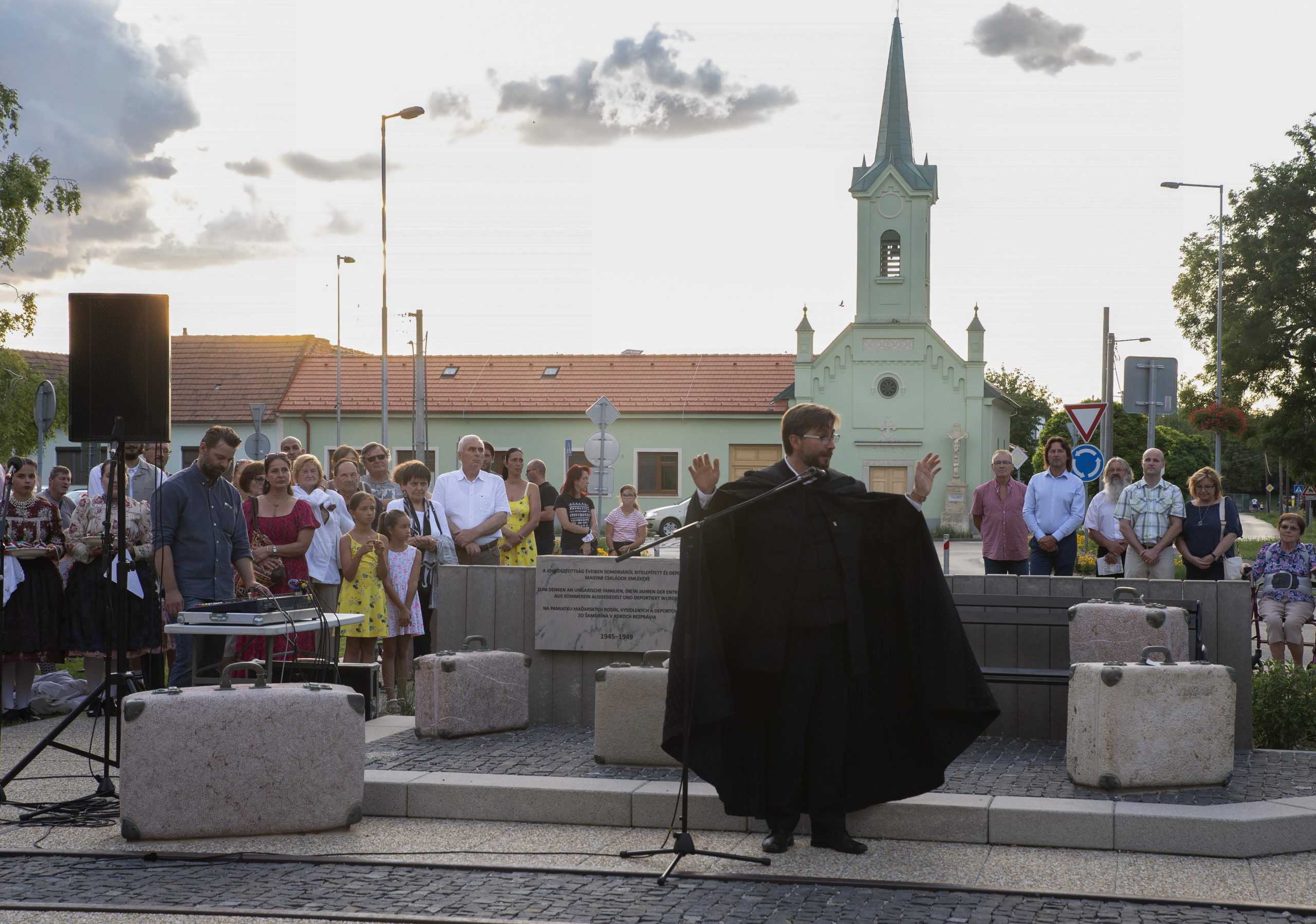 2021.08.03. Átadták a kitelepített magyarok emlékművét a felvidéki Somorján A Somorjáról Kitelepített Magyarok Emlékműve az útra összekészített koffereket ábrázol.