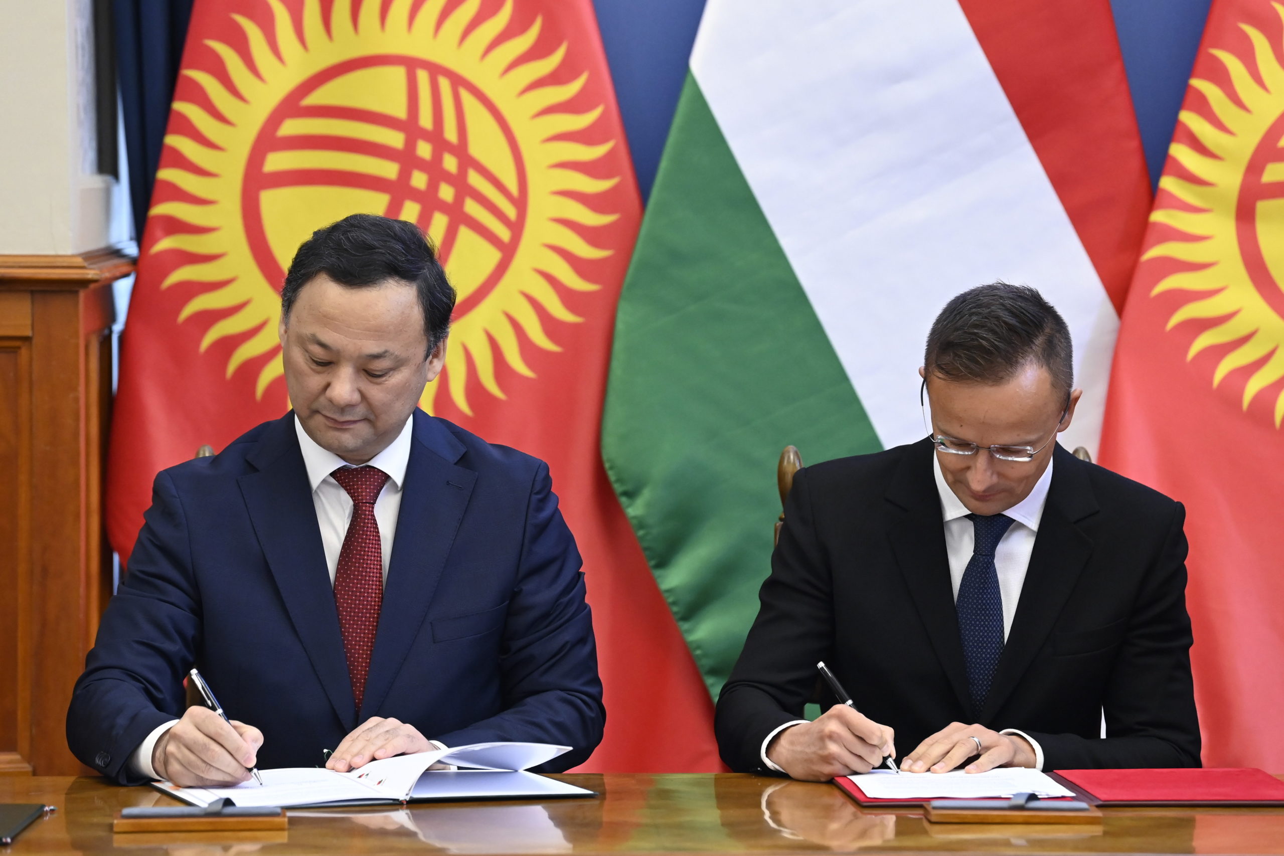 2024.09.19. A háborúknak nincsen megoldása a csatatéren Szijjártó Péter kirgiz kollégájával, Zseenbek Kulubajevvel tartott közös sajtóértekezletet.