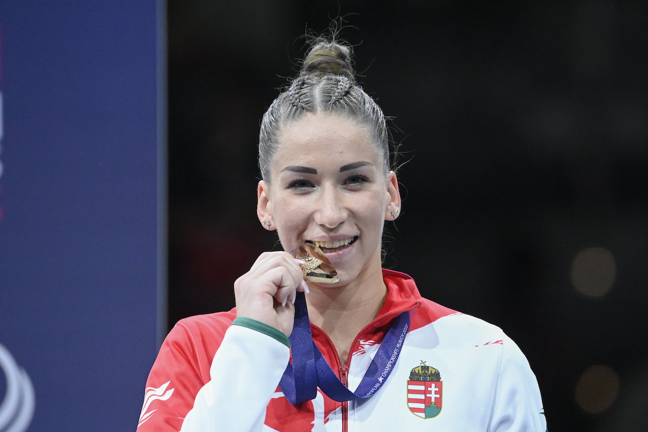 2023.04.15. Magyarok az ötödik és hatodik helyen felemáskorláton Az aranyérem az egyéni összetettben harmadikként végző olasz Alice D'Amato nyakába került.