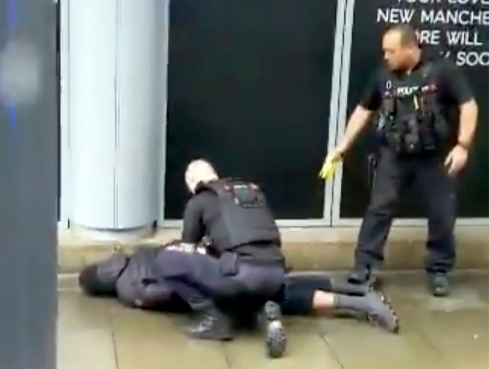 2019.10.11. Késelés Manchester belvárosában A gyanúsítottat a rendőrök elektromos sokkolóval leterítették, majd őrizetbe vették.