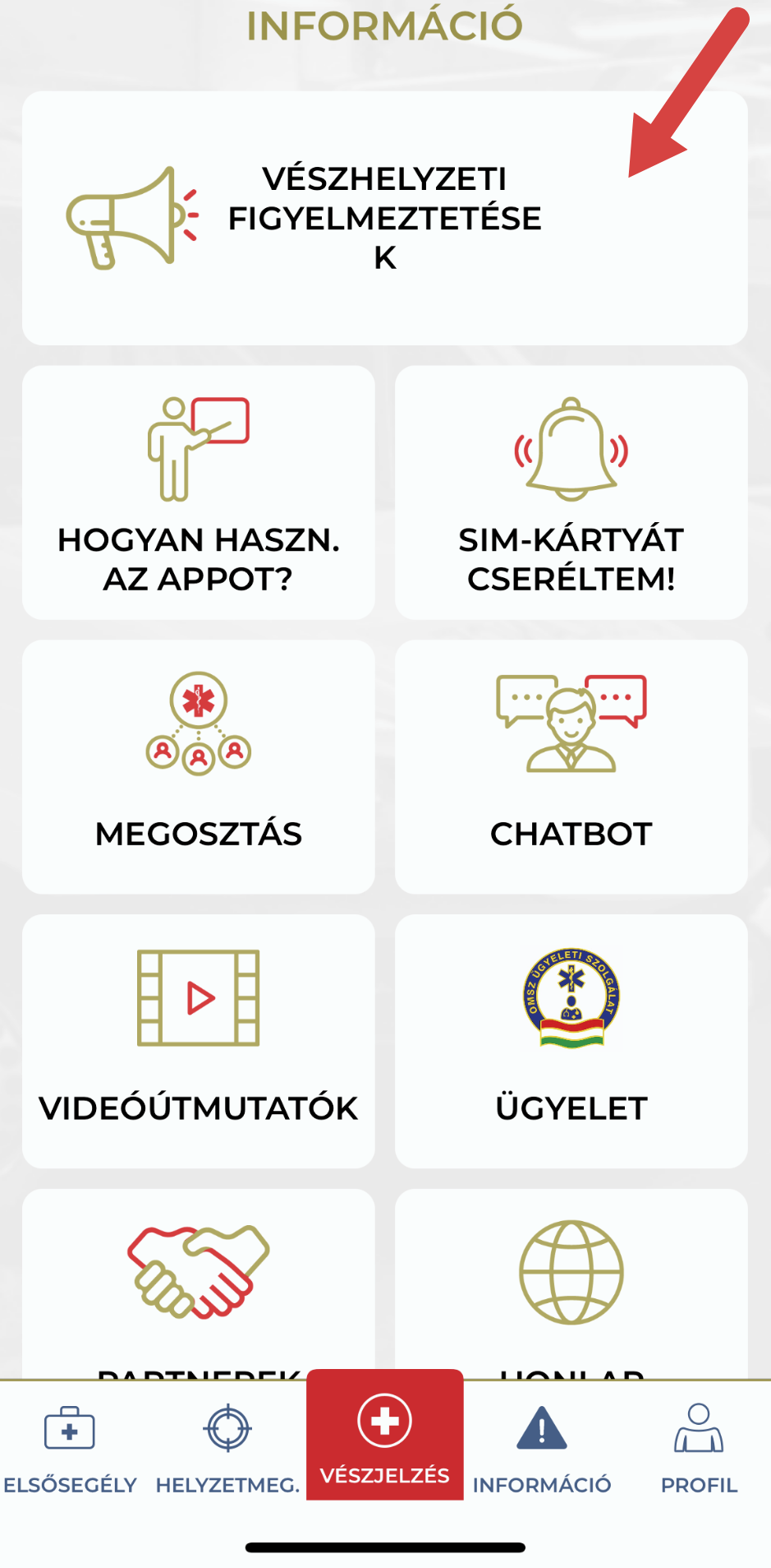 - Chatbot és tájékoztató rendszer: az appon belül információk érhetők el arról, hogyan kell eljárni különböző vészhelyzetekben, valamint közérdekű figyelmeztetéseket is küldhet.