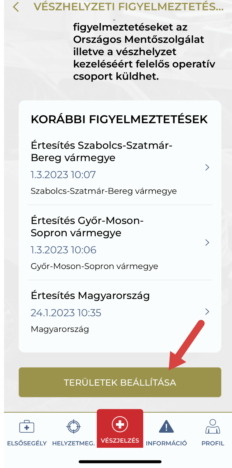 - Egészségügyi profil: előre megadhatók az egészségi állapotra vonatkozó adatok, amelyek a mentést végző szakemberek számára azonnal láthatók.
