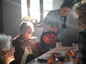 – Az évszaknak és időjárásnak megfelelően mindig koccintunk egy pohár teával vagy üdítővel, aminek fiziológiás szempontból is kulcsszerepe van: az időseknél jellemző, hogy nem figyelnek rá hogy megfelelő mennyiségű folyadékot fogyasszanak, ezért sokszor dehidratáltak lesznek. A demensekre ez hatványozottan igaz. A folyadékhiányban összesűrűsödik a vér, így kevesebb oxigén jut az agyba, ami tovább lassítja a gondolkodást, a reflexeket. Ha közösen teázunk, a mozdulatsor emlékeket hívhat elő, hiszen minden embernél másképpen rögzülnek az emlékek: segíthet felidézni őket egy hangeffektus, íz, illat vagy látvány. A közös teázás után már oldottabb a hangulat, ilyenkor általában magától áramlik tovább a beszélgetés, közben előkerül egy-egy régi tárgy, és azzal kapcsolatban elevenednek fel a régi történetek – mesél Bokonics-Kramlik Márta a foglalkozásról, hozzátéve, hogy a zene, a zenére való mozgás, a tánc és a gasztronómia mindig része a programnak.