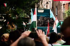 A gazdák mérgesek, felháborodottak az Európai Unió terve miatt. A brüsszeli vezetés 2027 után ugyanis megvonná a terület alapú támogatásokat. A gazdák legfőbb támogatása szűnne meg ezzel – mondta a HírTV tudósítója a Millenárisról, ahol a gazdák tüntettek. A tiltakozók harminc tonna trágyát vittek magukkal teherautón, amelyből egy ládányit több gazda az Európai Bizottság Magyarországi Képviseletének budapesti székhelyének bejárata előtt kiöntött, hogy kifejezze nemtetszését Brüsszel agrárpolitikai tervei miatt. A tudósító kifejtette: a demonstráló gazdák az ország minden megyéjéből érkeztek.