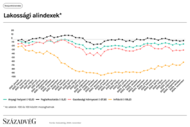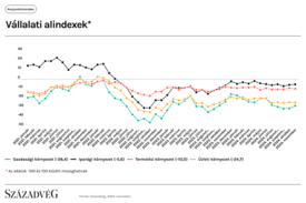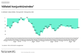 A Századvég Konjunktúrakutató Zrt. 2024. novemberi felmérése alapján a lakosság gazdasági közérzete 2,1 indexponttal erősödött, továbbá a vállalatok gazdasági várakozása 0,5 indexponttal vált kedvezőbbé az előző hónapban mért értékéhez képest. Így a –100 és +100 közötti skálán értelmezett lakossági index –16,5-re, a vállalati mutató értéke pedig –14,9-re nőtt.A novemberi felmérésben a háztartások véleményének pozitív irányú módosulása leginkább az infláció jövőbeli alakulását illetően alakult ki. A vállalatoknál pedig hazánk jövőbeni versenyképességének megítélése javult a legnagyobb mértékben.
