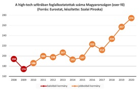 – Írország évek óta csúcstartó, ott a foglalkoztatottak majdnem tíz százaléka a high-tech szférában dolgozik. Mögötte van Szlovénia, Finnország, Magyarország.