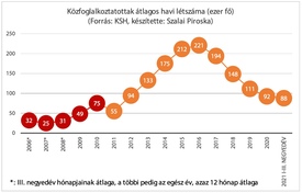 – Mai grafikonunkon a közfoglalkoztatottak számának havi átlaga látható. Ki számít közfoglalkoztatottnak?