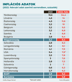 Beszédes, hogy az Amerikai Egyesült Államokban 40 éves rekordokat döntöget az infláció, Németországban pedig 30 éves csúcsokat dönget. Különösen aggasztó a helyzet Törökországban, ahol februárban 54,4 százalék volt az infláció, jóllehet ott az indokoltnál lazább monetáris és költségvetési politika is szerepet játszik ebben.