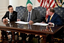 Gazdasági együttműködési megállapodást írt alá kedden Szijjártó Péter külgazdasági és külügyminiszter Nyugat-Virginia amerikai állam kormányzójával, Jim Justice-szal.