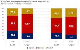 A diplomások számát tekintve ugyan némileg az uniós átlag vagyunk, de a szakértő szerint ezen a helyzeten sokat javíthat a nyelvvizsga-kötelezettség feloldása. Mint ismeretes, a kilencvenes évek közepétől a hiányzó nyelvvizsgák miatt közel százezer diploma ragadt benn az egyetemeken és főiskolákon. A Covid-járvány idején meghirdetett moratórium után kézhez kapott oklevelek magas száma várhatóan rövidesen javítani fog az Eurostat adatain is.